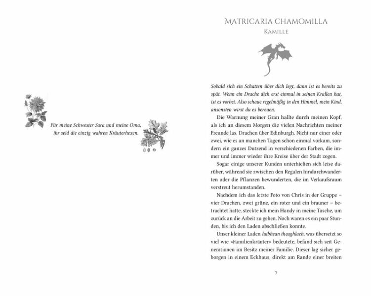 Als die Kräuterhexe Briar von Drachen auf eine entlegene schottische Insel entführt wird, fürchtet sie das Schlimmste. Doch statt als Snack zu enden, soll sie das Unmögliche schaffen: einen Drachen von einer rätselhaften Krankheit heilen. Als ihr dies tatsächlich gelingt, entpuppt sich das Biest als der faszinierende Krieger Darragh. Und Briar steht vor der Aufgabe ihres Lebens - als Außenstehende soll sie die Heilerin eines Drachenclans werden. Zwischen uralten Clangeheimnissen und neuen Gefahren brodelt die Insel vor Magie, und auch Briars Herz steht bald in Flammen ...