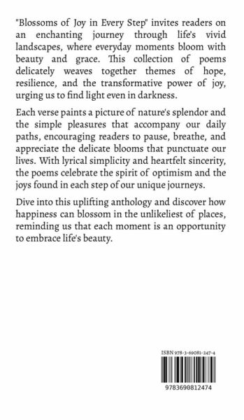 "Blossoms of Joy in Every Step" invites readers on an enchanting journey through life's vivid landscapes, where everyday moments bloom with beauty and grace. This collection of poems delicately weaves together themes of hope, resilience, and the transformative power of joy, urging us to find light even in darkness. Each verse paints a picture of nature's splendor and the simple pleasures that accompany our daily paths, encouraging readers to pause, breathe, and appreciate the delicate blooms that punctuate our lives. With lyrical simplicity and heartfelt sincerity, the poems celebrate the spirit of optimism and the joys found in each step of our unique journeys. Dive into this uplifting anthology and discover how happiness can blossom in the unlikeliest of places, reminding us that each moment is an opportunity to embrace life's beauty.