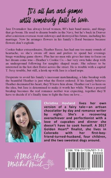 It's all fun and games until somebody falls in love... Jase Dvornakov has always loved women, 80's hair band music, and things that go boom. He used to disarm bombs in the Navy, but he's back in Denver after a mission overseas went sideways and destroyed his future, including his marriage. Now he arranges flowers in his family's floral business because flowers don't explode. Cookie-baker extraordinaire, Heather Reese, has had one too many rounds of heartache, so she's sworn off men and prefers to spend her evenings binge-watching game shows. Plus her no-men rule gives her time to focus on her dream come true--Heather's Cookie Co.--her very own bake shop with an underground following for naughty shaped treats. She refuses to be interested in the hot-shot florist across the street. He is trouble with a capital T. Sexy trouble, but still, a hook-up with Jase is a hard nope. Desperate to avoid his family's incessant matchmaking, a fake breakup with the beautiful Heather is just what the florist ordered. If his family believes Heather decimated his heart, they'll leave him alone. Heather isn't so keen on the idea, but Jase is determined to make it worth her while. When a pretend breakup becomes the real romance neither was expecting, together they'll have to decide if it's finally time to light the fuse on love...