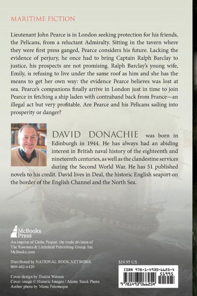 Lieutenant John Pearce is in London seeking protection for his friends, the Pelicans, from a reluctant Admiralty. Sitting in the tavern where they were first press ganged, Pearce considers his future. Lacking the evidence of perjury he once had to bring Captain Ralph Barclay to justice, his prospects are not promising. Ralph Barclay’s young wife, Emily, is refusing to live under the same roof as him and she has the means to get her own way: the evidence Pearce believes was lost at sea. Pearce’s companions finally arrive in London just in time to join Pearce in fetching a ship laden with contraband back from France—an illegal act but very profitable. Are Pearce and his Pelicans sailing into prosperity or danger?