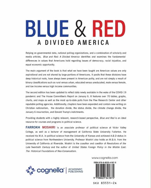 Relying on governmental data, national polling organizations, and a combination of scholarly and media articles, Blue and Red: A Divided America identifies and examines the fundamental differences in values that Americans hold regarding issues of democracy, racial injustice, and equal economic opportunity. The main argument of the book is that what we have been taught are American values are only aspirational and are not shared by large portions of Americans. It posits that these divisions have deep historical roots, have always been present in American polity, and are not simply a result of binary classifications such as rural versus urban, educated versus uneducated, male versus female, and low income versus high income communities. The second edition has been updated to reflect data newly available in the wake of the COVID-19 pandemic and The House Committee's Report on January 6. It features over 70 tables, graphs, charts, and maps as well as the most up-to-date polls from the Pew Research Center and other reputable polling agencies. Additionally, chapters have been expanded and contain new writing on Christian nationalism, the donation divide, the status divide, the climate change divide, the January 6 insurrection, and Donald Trump's indictments. Providing students with a highly relevant, research-based perspective, Blue and Red is an ideal resource for courses and programs in political science.