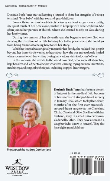 Dorinda Bush Jones started keeping a journal to share her struggles of being a terminal "blue baby" with her son and grandchildren. Born with four serious heart defects before open heart surgery was a reality, she spent much of her time alone, unable to keep up with other children. She often joined her parents at church, where she learned to rely on God during her lonely times. During the summer of her eleventh year, she began to see how God was steering the direction of her life to bring her to the place where she could go from being terminal to being here to tell her story. While her journal was originally meant for her family, she realized that people beyond her inner circle wanted to hear about how she was miraculously healed when she mentioned her writing during her various visits to doctors' offices. In this memoir, she reveals to the world how God, who knew all about her, kept her alive and led her to doctors who were learning, trying out new inventions, machinery, and surgical techniques, including stopped-heart surgery.