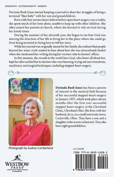 Dorinda Bush Jones started keeping a journal to share her struggles of being a terminal "blue baby" with her son and grandchildren. Born with four serious heart defects before open heart surgery was a reality, she spent much of her time alone, unable to keep up with other children. She often joined her parents at church, where she learned to rely on God during her lonely times. During the summer of her eleventh year, she began to see how God was steering the direction of her life to bring her to the place where she could go from being terminal to being here to tell her story. While her journal was originally meant for her family, she realized that people beyond her inner circle wanted to hear about how she was miraculously healed when she mentioned her writing during her various visits to doctors' offices. In this memoir, she reveals to the world how God, who knew all about her, kept her alive and led her to doctors who were learning, trying out new inventions, machinery, and surgical techniques, including stopped-heart surgery.