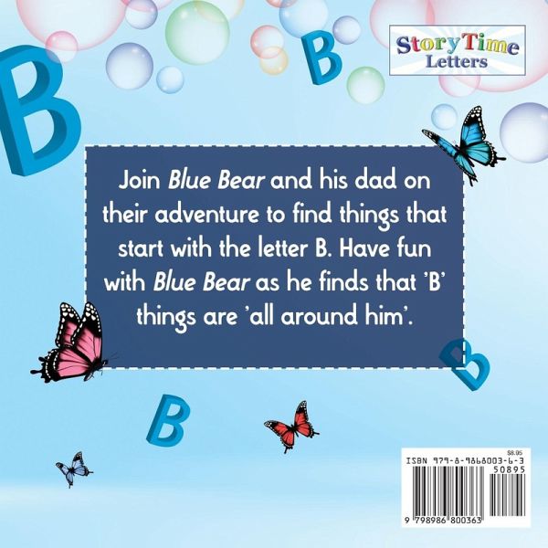 Part of the StoryTime Letter Collection. The most fun and effective way to teach Letter Sounds - through the fun of stories! This is Letter B. Join Blue Bear and his Dad on their adventure to find things that start with the Letter B. Have fun with Blue Bear as he finds that 'B' things are 'all around him' and that he is the most special 'B' of all!