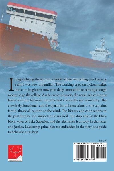 Imagine being thrust into a world where everything you knew as a child was now unfamiliar. The working crew on a Great Lakes iron core freighter is now your daily connection to earning enough money to go the college. As the events progress, the vessel, which is your home and job, becomes unstable and eventually not seaworthy. The crew is dysfunctional, and the dynamics of interactions of the captain's family throw all caution to the wind. The history and connections to the past become very important to survival. The ship sinks in the blue-black water of Lake Superior, and the aftermath is a study in character and justice. Leadership principles are embedded in the story as a guide to behavior at its best.