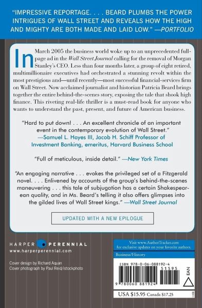 In March 2005 the business world woke up to an unprecedented full-page ad in the Wall Street Journal calling for the removal of Morgan Stanley's CEO. Less than four months later, a group of eight retired, multimillionaire executives had orchestrated a stunning revolt within the most prestigious and--until recently--most successful financial-services firm on Wall Street. Now acclaimed journalist and historian Patricia Beard brings together the entire behind-the-scenes story, exposing the tale that shook high finance. This riveting real-life thriller is a must-read book for anyone who wants to understand the past, present, and future of American business.