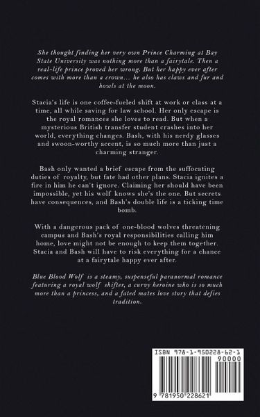 She thought finding her very own Prince Charming at Bay State University was nothing more than a fairytale. Then a real-life prince proved her wrong. But her happy ever after comes with more than a crown... he also has claws and fur and howls at the moon. Stacia's life is one coffee-fueled shift at work or class at a time, all while saving for law school. Her only escape is the royal romances she loves to read. But when a mysterious British transfer student crashes into her world, everything changes. Bash, with his nerdy glasses and swoon-worthy accent, is so much more than just a charming stranger. Bash only wanted a brief escape from the suffocating duties of royalty, but fate had other plans. Stacia ignites a fire in him he can't ignore. Claiming her should have been impossible, yet his wolf knows she's the one. But secrets have consequences, and Bash's double life is a ticking time bomb. With a dangerous pack of one-blood wolves threatening campus and Bash's royal responsibilities calling him home, love might not be enough to keep them together. Stacia and Bash will have to risk everything for a chance at a fairytale happy ever after. Blue Blood Wolf is a steamy, suspenseful paranormal romance featuring a royal wolf shifter, a curvy heroine who is so much more than a princess, and a fated mates love story that defies tradition.