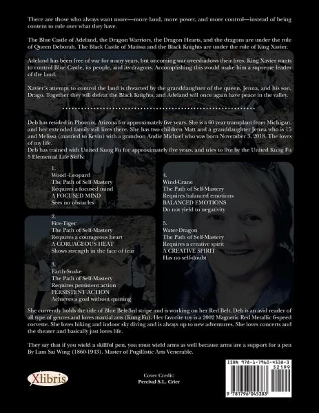 There are those who always want more-more land, more power, and more control-instead of being content to rule over what they have. The Blue Castle of Adeland, the Dragon Warriors, the Dragon Hearts, and the dragons are under the rule of Queen Deborah. The Black Castle of Matissa and the Black Knights are under the rule of King Xavier. Adeland has been free of war for many years, but oncoming war overshadows their lives. King Xavier wants to control Blue Castle, its people, and its dragons. Accomplishing this would make him a supreme leader of the land. Xavier's attempt to control the land is thwarted by the granddaughter of the queen, Jenna, and his son, Drago. Together they will defeat the Black Knights, and Adeland will once again have peace in the valley.