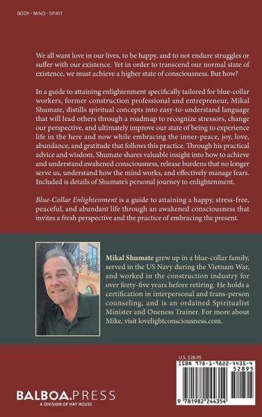 We all want love in our lives, to be happy, and to not endure struggles or suffer with our existence. Yet in order to transcend our normal state of existence, we must achieve a higher state of consciousness. But how? In a guide to attaining enlightenment specifically tailored for blue-collar workers, former construction professional and entrepreneur, Mikal Shumate, distills spiritual concepts into easy-to-understand language that will lead others through a roadmap to recognize stressors, change our perspective, and ultimately improve our state of being to experience life in the here and now while embracing the inner-peace, joy, love, abundance, and gratitude that follows this practice. Through his practical advice and wisdom, Shumate shares valuable insight into how to achieve and understand awakened consciousness, release burdens that no longer serve us, understand how the mind works, and effectively manage fears. Included is details of Shumate's personal journey to enlightenment. Blue-Collar Enlightenment is a guide to attaining a happy, stress-free, peaceful, and abundant life through an awakened consciousness that invites a fresh perspective and the practice of embracing the present.
