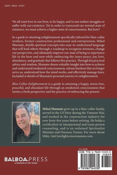 We all want love in our lives, to be happy, and to not endure struggles or suffer with our existence. Yet in order to transcend our normal state of existence, we must achieve a higher state of consciousness. But how? In a guide to attaining enlightenment specifically tailored for blue-collar workers, former construction professional and entrepreneur, Mikal Shumate, distills spiritual concepts into easy-to-understand language that will lead others through a roadmap to recognize stressors, change our perspective, and ultimately improve our state of being to experience life in the here and now while embracing the inner-peace, joy, love, abundance, and gratitude that follows this practice. Through his practical advice and wisdom, Shumate shares valuable insight into how to achieve and understand awakened consciousness, release burdens that no longer serve us, understand how the mind works, and effectively manage fears. Included is details of Shumate's personal journey to enlightenment. Blue-Collar Enlightenment is a guide to attaining a happy, stress-free, peaceful, and abundant life through an awakened consciousness that invites a fresh perspective and the practice of embracing the present.