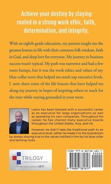 Achieve your destiny by staying rooted in a strong work ethic, faith, determination, and integrity. With an eighth-grade education, my parents taught me the greatest lessons in life with their common folk wisdom, faith in God, and deep love for everyone. My journey to business success wasn't typical. My path was narrower and had a few more bumps, but it was the work ethics and values of my blue-collar roots that helped me reach top executive levels. I now share some of the life lessons that have helped me along my journey in hopes of inspiring others to reach for the stars while staying grounded in your roots.