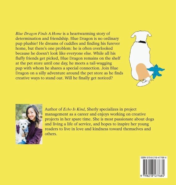 Blue Dragon Finds A Home is a heartwarming story of determination and friendship. Blue Dragon is no ordinary pup plushie! He dreams of cuddles and finding his furever home, but there's one problem: he is often overlooked because he doesn't look like everyone else. While all his fluffy friends get picked, Blue Dragon remains on the shelf at the pet store until one day, he meets a tail-wagging pup with whom he shares a special connection. Join Blue Dragon on a silly adventure around the pet store as he finds creative ways to stand out. Will he finally get noticed?