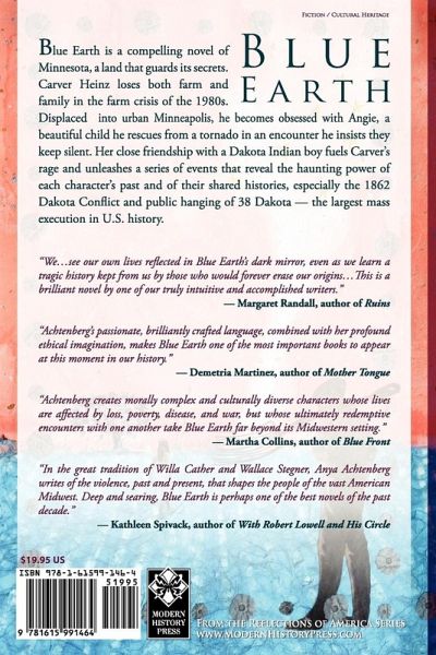 Blue Earth is a compelling novel of Minnesota, a land that guards its secrets. Carver Heinz loses both farm and family in the farm crisis of the 1980s. Displaced into urban Minneapolis, he becomes obsessed with Angie, a beautiful child he rescues from a tornado in an encounter he insists they keep silent. Her close friendship with a Dakota Indian boy fuels Carver's rage and unleashes a series of events that reveal the haunting power of each character's past and of their shared histories, especially the 1862 Dakota Conflict and public hanging of 38 Dakota--the largest mass execution in U.S. history. "We... see our own lives reflected in Blue Earth 's dark mirror, even as we learn a tragic history kept from us by those who would forever erase our origins... This is a brilliant novel by one of our truly intuitive and accomplished writers" --Margaret Randall, author of Ruins "Achtenberg's passionate, brilliantly crafted language, combined with her profound ethical imagination, makes Blue Earth one of the most important books to appear at this moment in our history." --Demetria Martinez, author of Mother Tongue "Achtenberg creates morally complex and culturally diverse characters whose lives are affected by loss, poverty, disease, and war, but whose ultimately redemptive encounters with one another take Blue Earth far beyond its Midwestern setting." --Martha Collins, author of Blue Front "In the great tradition of Willa Cather and Wallace Stegner, Anya Achtenberg writes of the violence, past and present, that shapes the people of the vast American Midwest. Deep and searing, Blue Earth is perhaps one of the best novels of the past decade." --Kathleen Spivack, author of With Robert Lowell and His Circle Learn more at www.Anya-Achtenberg.com ¿¿From the Reflections of History Series at Modern History Press www.ModernHistoryPress.com