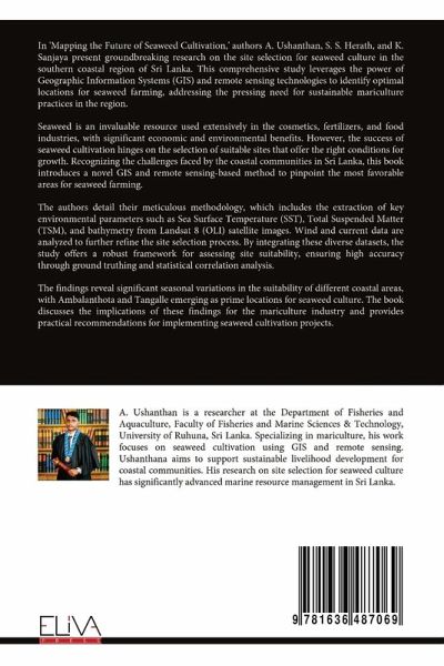 In 'Mapping the Future of Seaweed Cultivation,' authors A. Ushanthan, S. S. Herath, and K. Sanjaya present groundbreaking research on the site selection for seaweed culture in the southern coastal region of Sri Lanka. This comprehensive study leverages the power of Geographic Information Systems (GIS) and remote sensing technologies to identify optimal locations for seaweed farming, addressing the pressing need for sustainable mariculture practices in the region. Seaweed is an invaluable resource used extensively in the cosmetics, fertilizers, and food industries, with significant economic and environmental benefits. However, the success of seaweed cultivation hinges on the selection of suitable sites that offer the right conditions for growth. Recognizing the challenges faced by the coastal communities in Sri Lanka, this book introduces a novel GIS and remote sensing-based method to pinpoint the most favorable areas for seaweed farming. The authors detail their meticulous methodology, which includes the extraction of key environmental parameters such as Sea Surface Temperature (SST), Total Suspended Matter (TSM), and bathymetry from Landsat 8 (OLI) satellite images. Wind and current data are analyzed to further refine the site selection process. By integrating these diverse datasets, the study offers a robust framework for assessing site suitability, ensuring high accuracy through ground truthing and statistical correlation analysis. The findings reveal significant seasonal variations in the suitability of different coastal areas, with Ambalanthota and Tangalle emerging as prime locations for seaweed culture. The book discusses the implications of these findings for the mariculture industry and provides practical recommendations for implementing seaweed cultivation projects.