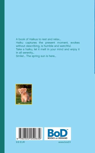 A book of Haikus to rest and relax...Haiku captures the present moment, evokes without describing, is humble and watchful. Take a haiku, let it melt in your mind and enjoy it in all serenity... Smile!... The spring sun is here...