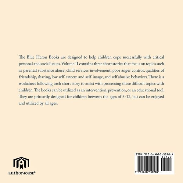 The Blue Heron Books are designed to help children cope successfully with critical personal and social issues. Volume II contains three short stories that focus on topics such as parental substance abuse, child services involvement, poor anger control, qualities of friendship, sharing, low self-esteem and self-image, and self abusive behaviors. There is a worksheet following each short story to assist with processing these difficult topics with children. The books can be utilized as an intervention, prevention, or an educational tool. They are primarily designed for children the ages of 5-12, but can be enjoyed and utilized by all ages.