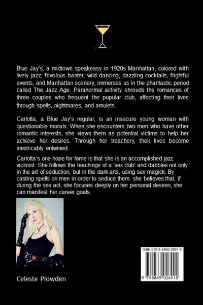 Blue Jay's, a midtown speakeasy in 1920s Manhattan, colored with lively jazz, frivolous banter, wild dancing, dazzling cocktails, frightful events, and Manhattan scenery, immerses us in the phantastic period called The Jazz Age. Paranormal activity shrouds the romances of three couples who frequent the popular club, affecting their lives through spells, nightmares, and amulets. Carlotta, a Blue Jay's regular, is an insecure young woman with questionable morals. When she encounters two men who have other romantic interests, she views them as potential victims to help her achieve her desires. Through her treachery, their lives become inextricably intertwined, much to their regret. Carlotta's one hope for fame is that she is an accomplished jazz violinist. She follows the teachings of a 'sex club' and dabbles not only in the art of seduction, but in the dark arts, using sex magick. By casting spells on men in order to seduce them, she believes that, if during the sex act, she focuses deeply on her personal desires, she can manifest her career goals. A compelling story layered with humor, dark fantasy, romance and captivating characters, this provocative tale will keep the reader enthralled.