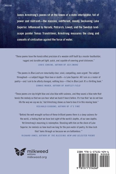 In "Blue Lash, " James Armstrong explores the way a physical place can be alchemically transformed into mental geographies. The world of Lake Superior comes alive and expands outward in these poems: cicadas "grind their teeth/under the blue roof of August"; a quartz pebble becomes "little knuckle/petrified egg/white as a wave-cap"; a Jet Ski "revs past the dock/like a demon out of Milton." Stripping away the layer of sentimentality that often cloaks the lake, Armstrong portrays it instead as a rebuke to human arrogance, and a reminder of the sublime indifference of wild places.