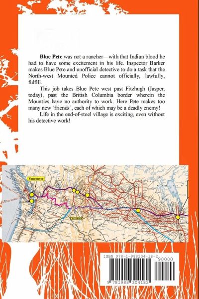 Blue Pete was not a rancher-with that Indian blood he had to have some excitement in his life. Inspector Barker makes Blue Pete and unofficial detective to do a task that the North-west Mounted Police cannot officially, lawfully, fulfill. This job takes Blue Pete west past Fitzhugh (Jasper, today), past the British Columbia border wherein the Mounties have no authority to work. Here Pete makes too many new 'friends', each of which may be a deadly enemy! Life in the end-of-steel village is exciting, even without his detective work!