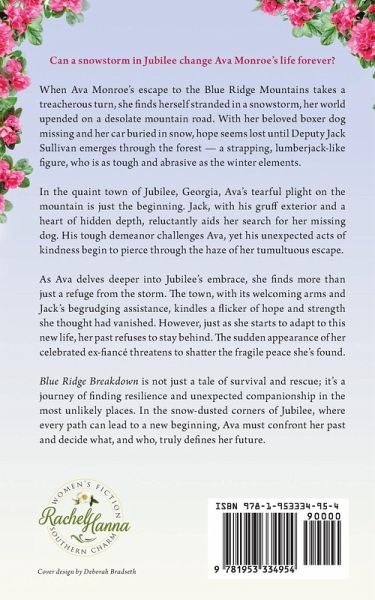 Can a snowstorm in Jubilee change Ava Monroe's life forever? When Ava Monroe's escape to the Blue Ridge Mountains takes a treacherous turn, she finds herself stranded in a snowstorm, her world upended on a desolate mountain road. With her beloved boxer dog missing and her car buried in snow, hope seems lost until Deputy Jack Sullivan emerges through the forest - a strapping, lumberjack-like figure, who is as tough and abrasive as the winter elements. In the quaint town of Jubilee, Georgia, Ava's tearful plight on the mountain is just the beginning. Jack, with his gruff exterior and a heart of hidden depth, reluctantly aids her search for her missing dog. His tough demeanor challenges Ava, yet his unexpected acts of kindness begin to pierce through the haze of her tumultuous escape. As Ava delves deeper into Jubilee's embrace, she finds more than just a refuge from the storm. The town, with its welcoming arms and Jack's begrudging assistance, kindles a flicker of hope and strength she thought had vanished. However, just as she starts to adapt to this new life, her past refuses to stay behind. The sudden appearance of her celebrated ex-fiancé threatens to shatter the fragile peace she's found. Blue Ridge Breakdown is not just a tale of survival and rescue; it's a journey of finding resilience and unexpected companionship in the most unlikely places. In the snow-dusted corners of Jubilee, where every path can lead to a new beginning, Ava must confront her past and decide what, and who, truly defines her future.
