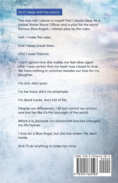 For 12 weeks every year, the Blue Angels descend from the heavens and land in El Centro, California. The residents treat the pilots like gods: the city council members host black-tie galas, little old ladies bring them homemade pies, and groupies wait by their rooms to satisfy their desires. Everyone worships them - everyone, that is, except for me. I hate the way they waltz into my poor town and romance all the residents only to vanish into the sky. But even I can't afford to say no when I'm offered the chance to be the nanny for sexy, cocky pilot Beckett Daly's baby girl, Sky. With El Centro's high unemployment rate, this job is my only hope to feed my family and maybe one day leave this town. No matter how close I grow to him, no matter how much I hunger for his embrace, I'll never let down my guard for this devil in a Blue Angel's disguise.