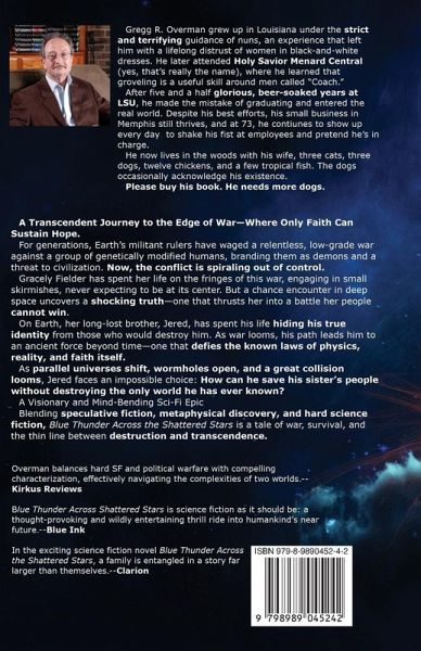 A Transcendent Journey to the Edge of War-Where Only Faith Can Sustain Hope. For generations, Earth's militant rulers have waged a relentless, low-grade war against a group of genetically modified humans, branding them as demons and a threat to civilization. Now, the conflict is spiraling out of control. Gracely Fielder has spent her life on the fringes of this war, engaging in small skirmishes, never expecting to be at its center. But a chance encounter in deep space uncovers a shocking truth-one that thrusts her into a battle her people cannot win. On Earth, her long-lost brother, Jered, has spent his life hiding his true identity from those who would destroy him. As war looms, his path leads him to an ancient force beyond time-one that defies the known laws of physics, reality, and faith itself. As parallel universes shift, wormholes open, and a great collision looms, Jered faces an impossible choice: How can he save his sister's people without destroying the only world he has ever known? A Visionary and Mind-Bending Sci-Fi Epic Blending speculative fiction, metaphysical discovery, and hard science fiction, Blue Thunder Across the Shattered Stars is a tale of war, survival, and the thin line between destruction and transcendence.