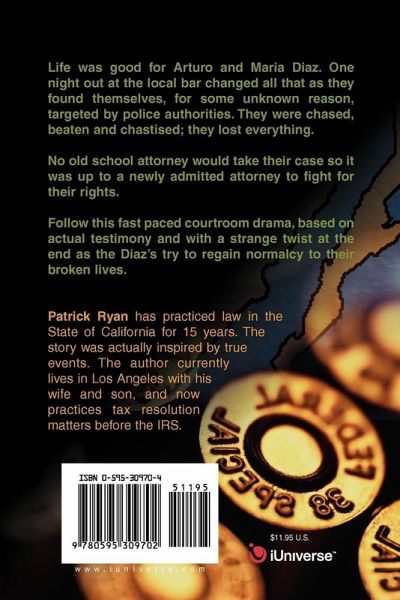 Life was good for Arturo and Maria Diaz. One night out at the local bar changed all that as they found themselves, for some unknown reason, targeted by police authorities. They were chased, beaten and chastised; they lost everything. No old school attorney would take their case so it was up to a newly admitted attorney to fight for their rights. Follow this fast paced courtroom drama, based on actual testimony and with a strange twist at the end as the Diaz's try to regain normalcy to their broken lives.