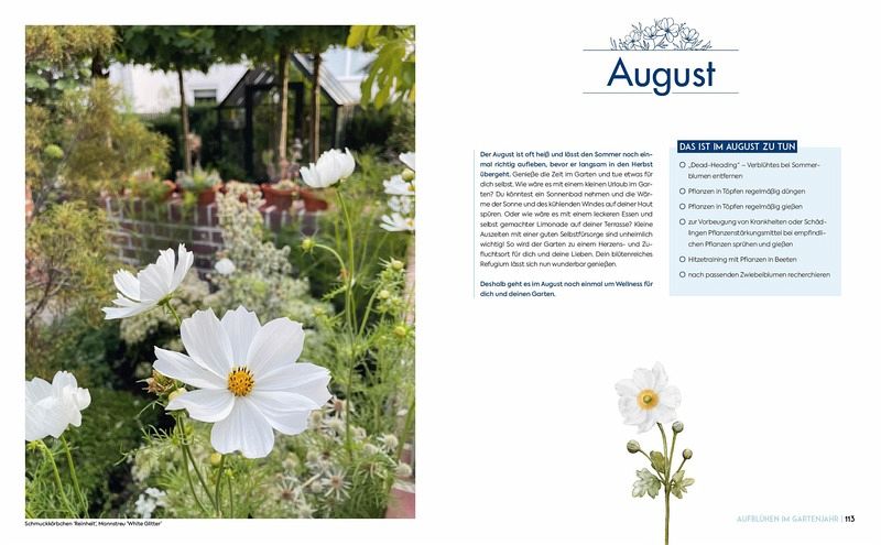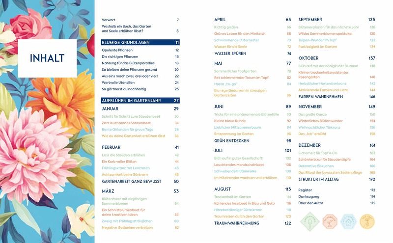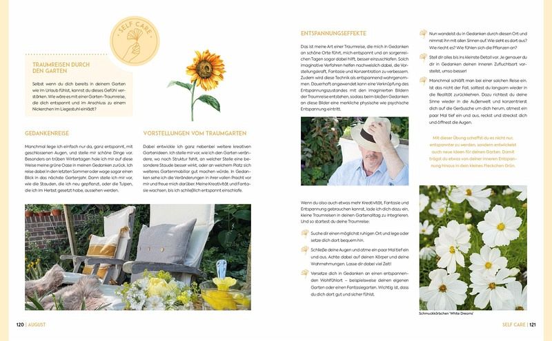 Praktisches Gartenwissen, verbunden mit psychologischen Übungen und Inspirationen, für mehr Entspannung im GartenMonatliche Impulse für den eigenen Garten mit Gartenwissen, Pflanzenempfehlungen, 12 Projekten für mehr Gemütlichkeit und 12 farblich ansprechenden BeetplänenDas erste Gartenbuch mit Achtsamkeitsübungen, um den eigenen Garten stressfrei zu erlebenGartengestaltung für mehr Ruhe im Innen und AußenMit Achtsamkeitsübungen den Garten auch mal nur genießen und den Stress ziehen lassen