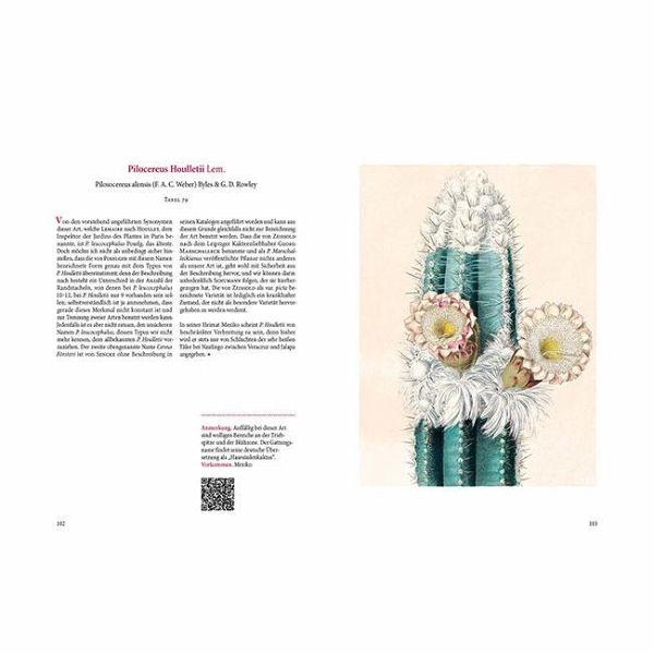 Die durch ihre Farbenpracht und detaillierte Darstellung beeindruckenden Zeichnungen der Bandes Blühende Kakteen zeigen die Vielfalt und Schönheit dieser in Deutschland immer beliebter werden Pflanzengattung. Längst sind die Kakteen keine Spinnerei schrulliger Pflanzennerds mehr. Kakteen:freundinnen finden sich inzwischen in den städtischen Hinterhoffenstern sowie in den ländlichen Bauerngärten. Die in diesem Band abgebildeten Kakteen, gezeichnet von Toni Gürke, sind auf Grund ihres Detailreichtums ein ganz besonderer Schatz. Gürke vermochte es, die Kakteen in einer Präzision zu zeichnen, die ein Foto nicht zu vermitteln vermag. Unser Band zeigt alle 180 Tafeln dieses beeindruckenden Werkes. Mit einem fachkundigen Vorwort führt der Kakteenexperte und Herausgeber dieses Bandes Dr. Detlev Metzing in das Buch ein. Seine Ergänzungen führen den ursprünglichen Text ins 21. Jahrhundert. Blühende Kakteen (Iconographia Cactacearum) ist ein im Auftrag der Deutschen Kakteen-Gesellschaft von 1900 bis 1921 in 45 Heften mit je vier Tafeln herausgegebenes Werk mit Kakteenabbildungen und begleitenden Texten. Mit 180 handkolorierten Lithographien ist es das umfangreichste Werk der Zeit. Die detaillierten Texte zu den Abbildungen haben größtenteils noch heute Gültigkeit. Die Lithographien, größtenteils gezeichnet von Toni Gürke, der Ehefrau des späteren Herausgebers Max Gürke, sind bahnbrechend.