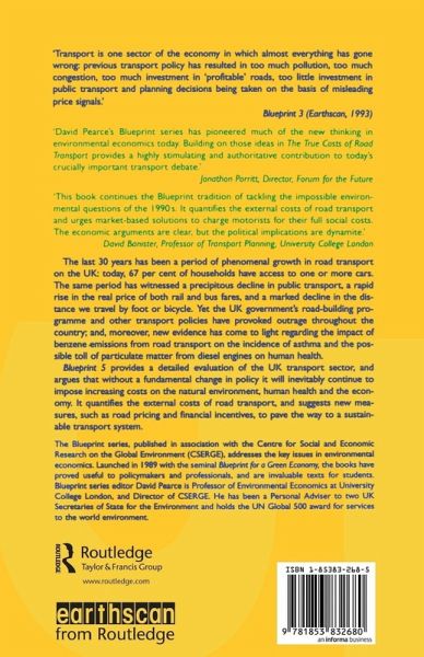 David Maddison is Research Fellow in CSERGE at University College London and the University of East Anglia, Norwich. Olof Johansson is a Research Fellow in the Department of Economics at the University of Gotenborg, Sweden. David Pearce is Professor of Environmental Economics at University College London and Director of CSERGE at University College London and the University of East Anglia. Edward Calthrop is a consultant with Economics for the Environmental Consultance (EFTEC). Todd Litman is Director of the Victoria Transport policy Institute, British Columbia, Canada. Eric Verhoef is with the Department of Spatial Economics, free University of Amsterdam and is also affiliated to the Tinbergen Institute.
