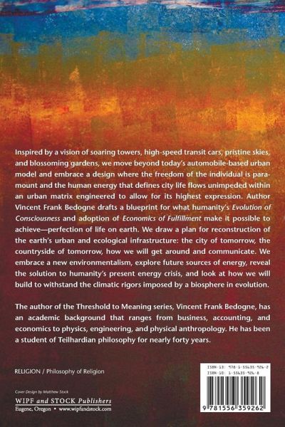 Inspired by a vision of soaring towers, high-speed transit cars, pristine skies, and blossoming gardens, we move beyond today's automobile-based urban model and embrace a design where the freedom of the individual is paramount and the human energy that defines city life flows unimpeded within an urban matrix engineered to allow for its highest expression. Author Vincent Frank Bedogne drafts a blueprint for what humanity's Evolution of Consciousness and adoption of Economics of Fulfillment make it possible to achieve-perfection of life on earth. We draw a plan for reconstruction of the earth's urban and ecological infrastructure: the city of tomorrow, the countryside of tomorrow, how we will get around and communicate. We embrace a new environmentalism, explore future sources of energy, reveal the solution to humanity's present energy crisis, and look at how we will build to withstand the climatic rigors imposed by a biosphere in evolution.