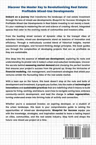 Discover the Master Key to Revolutionizing Real Estate: Profitable Mixed-Use Developments Embark on a journey that transforms the landscape of real estate investment through the lens of mixed-use developments. Blueprint for Success: Strategies for Profitable Mixed-Use Developments in Real Estate Investing is not merely a book; it's your roadmap to mastering the art and science of creating vibrant, integrated spaces that cater to the evolving needs of communities and investors alike. From the bustling street corners of dynamic cities to the tranquil vibes of suburban locales, mixed-use developments stand as beacons of innovation and efficiency. Through a meticulously curated blend of historical insights, market assessment strategies, and forward-thinking design principles, this book guides you through the complexities of developing projects that are as profitable as they are sustainable. Dive deep into the essence of mixed-use development, exploring its roots and understanding its pivotal role in today's urban and suburban landscapes. Uncover the secrets behind assessing market demand and choosing the perfect location that ensures your project's success from the ground up. Grasp the intricacies of financial modeling, risk management, and investment strategies that shield your ventures amidst the fluctuating tides of the real estate market. With a keen eye on the future, this book doesn't stop at the nuts and bolts of development and investment. It propels you further, into the realm of technological innovations and sustainable practices that are redefining what it means to build spaces for living, working, and leisure. Learn how to navigate zoning laws, embrace community-centric development, and lead the charge in urban regeneration, turning underused areas into thriving hubs of activity and connection. Whether you're a seasoned investor, an aspiring developer, or a student of the urban landscape, this book is your comprehensive guide to seizing the opportunities of mixed-use developments. Blueprint for Success equips you with the knowledge, strategies, and inspiration needed to leave a lasting impact on cities, communities, and the real estate industry. Step forth and shape the future-one mixed-use project at a time.