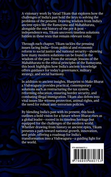 In an era where India stands at the crossroads of opportunity and challenge, BluePrint to Make Bharat a Vishwaguru offers a visionary roadmap to elevate India into a global leader. Authored by Varad Tikam, this thought-provoking work delves into the multifaceted issues facing the nation, from education and economy to national security and social justice. With a blend of rigorous analysis and innovative ideas, Tikam proposes transformative reforms designed to harness India's potential. He advocates for a merit-based education system that champions creativity over rote learning, calls for robust economic policies that empower the middle class, and presents a bold stance on national security that prioritizes the safety of citizens while confronting terrorism head-on. Each chapter is meticulously crafted, addressing critical concerns such as poverty, trade deficits, and the intricacies of the caste system, all while offering actionable solutions that future governments can implement. Tikam's vision transcends traditional boundaries, seeking to unite diverse perspectives and build a cohesive strategy for India's ascent as a Vishwaguru-a guiding light for the world.