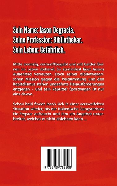 Sein Name: Jason Degracia. Seine Profession: Bibliothekar. Sein Leben: Gefährlich. Mitte zwanzig, vernunftbegabt und mit beiden Beinen im Leben stehend. So zumindest lässt Jasons Außenbild vermuten. Doch seiner bibliothekarischen Mission gegen die Verdummung und den Kapitalismus stehen ungeahnte Herausforderungen entgegen - und sein kaputter Sportwagen ist nur eine davon. Schon bald findet Jason sich in einer verzweifelten Situation wieder, bis der italienische Gangsterboss Flo Fegster auftaucht und ihm ein Angebot unterbreitet, welches er nicht ablehnen kann ...