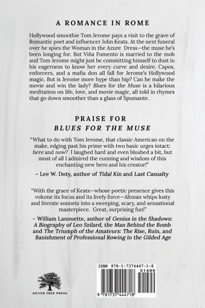 A ROMANCE IN ROME... Blues for the Muse, a comedy-adventure set in modern-day Rome, is an unpredictable blend of film-noir danger, roller-coaster romance, and sweet depths of feeling, with an aging, risk-taking hero who should know better and a fetching Italian siren who definitely does. The story touches chords of love and crime and the redemptive power of art, all done in sonnets that are a breeze to read and chocked with pleasures. "With the grace of Keats-whose poetic presence gives this volume its lively force-Altman whips lusty and literate sonnets into a sweeping, scary, and sensational masterpiece!" - William Lanouette, author of The Triumph of the Amateurs and Genius in the Shadows. The story opens and closes in the Roman cemetery where John Keats is buried. In between, it features Italian mobsters and American conmen, Hollywood moviemaking, an unforgettable femme fatale, a high-stakes love affair, concealed identities and unanticipated revelations, the eternal glories of Rome and-almost magically-the presiding spirit of the young English poet who wrote "Bright Star." Blues for the Muse is a hilarious meditation on life, love, and movie magic, told in whip-smart rhymes that will make you smile with surprise and delight.
