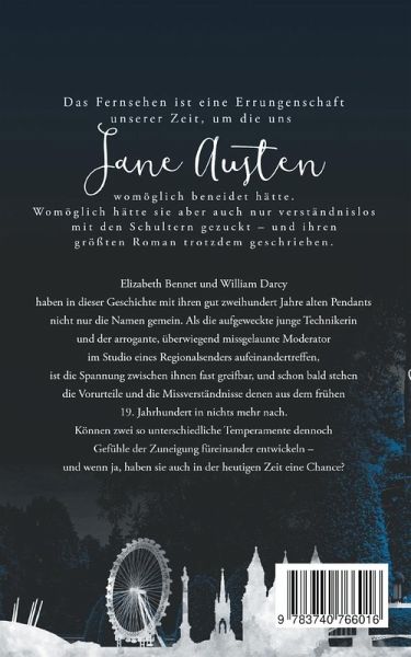 Das Fernsehen ist eine Errungenschaft unserer Zeit, um die uns Jane Austen womöglich beneidet hätte. Womöglich hätte sie aber auch nur verständnislos mit den Schultern gezuckt - und ihren größten Roman trotzdem geschrieben.Elizabeth Bennet und William Darcy haben in dieser Geschichte mit ihren gut zweihundert Jahre alten Pendants nicht nur die Namen gemein. Als die aufgeweckte junge Technikerin und der arrogante, überwiegend missgelaunte Moderator im Studio eines Regionalsenders aufeinandertreffen, ist die Spannung zwischen ihnen fast greifbar, und schon bald stehen die Vorurteile und die Missverständnisse denen aus dem frühen 19. Jahrhundert in nichts mehr nach.Können zwei so unterschiedliche Temperamente dennoch Gefühle der Zuneigung füreinander entwickeln - und wenn ja, haben sie auch in der heutigen Zeit eine Chance?Ein modernes »Stolz und Vorurteil« vor der illustren Kulisse der heutigen Fernsehwelt!