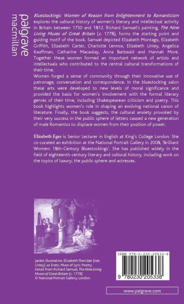 'Eger's meticulously researched discussion of the bluestockings does much to enrich our understanding of women's role in Enlightenment and Romantic culture... it will become an essential text for those studying the blustockings as well as eighteenth-century women writers.' - JoEllen DeLucia, New Books Online - 19