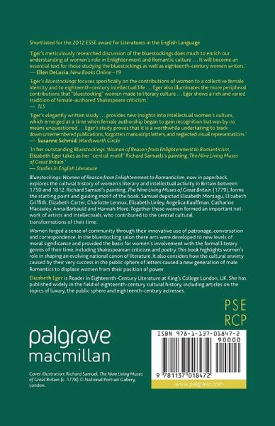 'Eger's meticulously researched discussion of the bluestockings does much to enrich our understanding of women's role in Enlightenment and Romantic culture... it will become an essential text for those studying the blustockings as well as eighteenth-century women writers.' - JoEllen DeLucia, New Books Online - 19