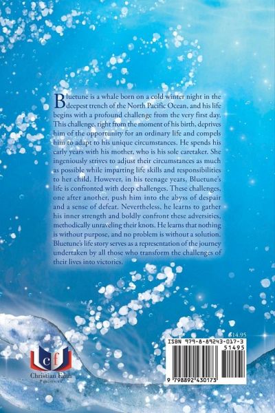 Bluetune is a whale born on a cold winter night in the deepest trench of the North Pacific Ocean, and his life begins with a profound challenge from the very first day. This challenge, right from the moment of his birth, deprives him of the opportunity for an ordinary life and compels him to adapt to his unique circumstances. He spends his early years with his mother, who is his sole caretaker. She ingeniously strives to adjust their circumstances as much as possible while imparting life skills and responsibilities to her child. However, in his teenage years, Bluetune's life is confronted with deep challenges. These challenges, one after another, push him into the abyss of despair and a sense of defeat. Nevertheless, he learns to gather his inner strength and boldly confront these adversities, methodically unraveling their knots. He learns that nothing is without purpose, and no problem is without a solution. Bluetune's life story serves as a representation of the journey undertaken by all those who transform the challenges of their lives into victories.
