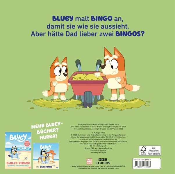 Als Dad der Satz rausrutscht, es wäre einfacher mit zwei Bingo-Mädchen, die hilfsbereit und ordentlich sind, will Bluey etwas ausprobieren. Sie malt ihre kleine Schwester Bingo mit blauer Farbe an und zeigt ihr, wie man wild und vorlaut ist. Aber zwei Blueys kommen bei Mum und Dad gar nicht gut an ... Werden die Eltern lernen, ihre Mädchen so zu akzeptieren, wie sie sind?