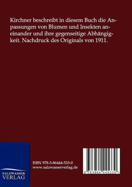 Kirchner beschreibt in diesem Buch die Anpassungen von Blumen und Insekten aneinander und ihre gegenseitige Abhängigkeit. Nachdruck des Originals von 1911.