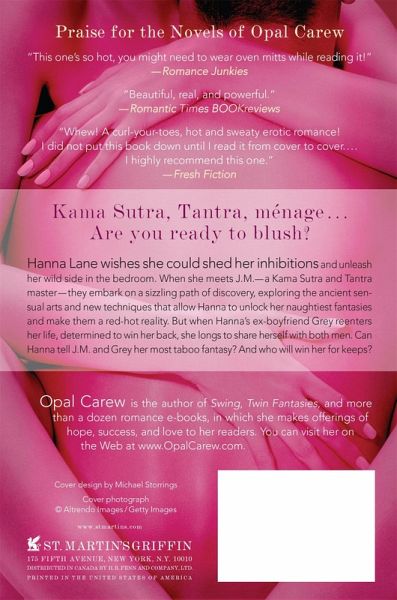 Kama Sutra, Tantra, Ménage...are you ready to blush? Hanna Lane wishes she could shed her inhibitions and unleash her wild side in the bedroom. When she meets J. M.--a Kama Sutra and Tantra master--they embark on a sizzling path of discovery, exploring the ancient sensual arts and discovering new techniques that allow Hanna to unlock her naughtiest fantasies and make them a red-hot reality. But when Hanna's exboyfriend Grey re-enters her life determined to win her back, Hanna longs to share herself with both men. But can she tell J.M. and Grey her most taboo fantasy? And who will win her for keeps?