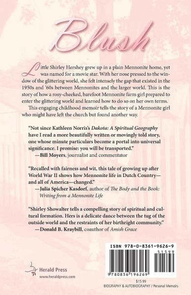 "I promise: you will be transported," says Bill Moyers of this memoir. Part Mennonite in a Little Black Dress, part Growing Up Amish, and part Little House on the Prairie, this book evokes a lost time, in Lancaster County, Pennsylvania, when a sheltered little girl named after Shirley Temple entered a family and church caught up in the midst of the cultural changes of the 1950's and `60's. With gentle humor and clear-eyed affection the author, who grew up to become a college president, tells the story of her first encounters with the "glittering world" and her desire for "fancy" forbidden things she could see but not touch. The reader enters a plain Mennonite Church building, walks through the meadow, makes sweet and sour feasts in the kitchen and watches the little girl grow up. Along the way, five other children enter the family, one baby sister dies, the family moves to the "home place." The major decisions, whether to join the church, and whether to leave home and become the first person in her family to attend college, will have the reader rooting for the girl to break a new path. In the tradition of Jill Ker Conway's The Road to Coorain, this book details the formation of a future leader who does not yet know she's being prepared to stand up to power and to find her own voice. The book contains many illustrations and resources, including recipes, a map, and an epilogue about why the author is still Mennonite. Topics covered include the death of a child, Pennsylvania Dutch cooking, the role of bishops in the Mennonite church, the paradoxes of plain life (including fancy cars and the practice of growing tobacco). The drama of passing on the family farm and Mennonite romance and courtship, as the author prepares to leave home for college, create the final challenges of the book.272 Pages.