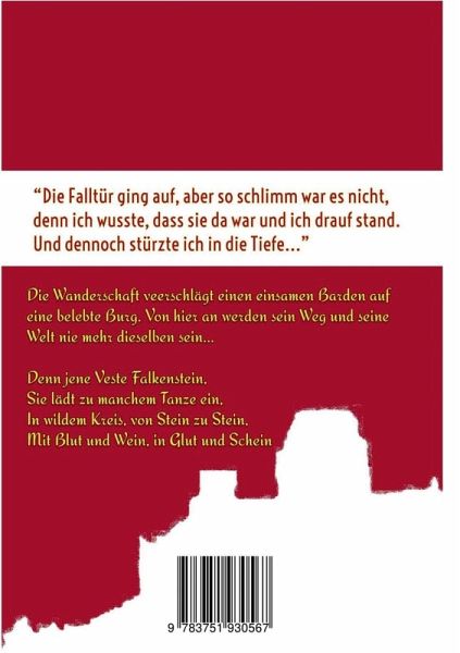 Anmerkung der Autoren: Alle Erlöse aus den Verkäufen gehen als Spenden direkt an unsere Freunde von Café con Leche (https://www.cafe-con-leche.org) und an Sophia Kirst Art (Instagram: @sophiakirst.art) für ihren Beitrag der wunderbaren Illustrationen zu diesem Buchprojekt:_"Die Wanderschaft verschlägt einen einsamen Barden auf eine belebte Burg. Von hier an werden sein Weg und seine Welt nie mehr dieselben sein...Denn jene Veste Falkenstein,Sie lädt zu manchem Tanze ein,In wildem Kreis, von Stein zu Stein,Mit Blut und Wein, in Glut und Schein"