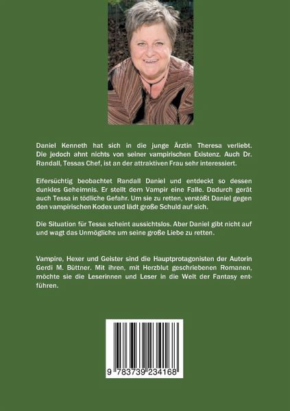 Daniel Kenneth hat sich in die junge Ärztin Theresa verliebt.Die jedoch ahnt nichts von seiner vampirischen Existenz. Auch Dr. Randall, Tessas Chef, ist an der attraktiven Frau sehr interessiert.Eifersüchtig beobachtet Randall Daniel und entdeckt so dessen dunkles Geheimnis. Er stellt dem Vampir eine Falle. Dadurch gerät auch Tessa in tödliche Gefahr. Um sie zu retten, verstößt Daniel gegen den vampirischen Kodex und lädt große Schuld auf sich.Die Situation für Tessa scheint aussichtslos. Aber Daniel gibt nicht auf und wagt das Unmögliche um seine große Liebe zu retten.Vampire, Hexer und Geister sind die Hauptprotagonisten der Autorin Gerdi M. Büttner. Mit ihren, mit Herzblut geschriebenen Romanen, möchte sie die Leserinnen und Leser in die Welt der Fantasy entführen.