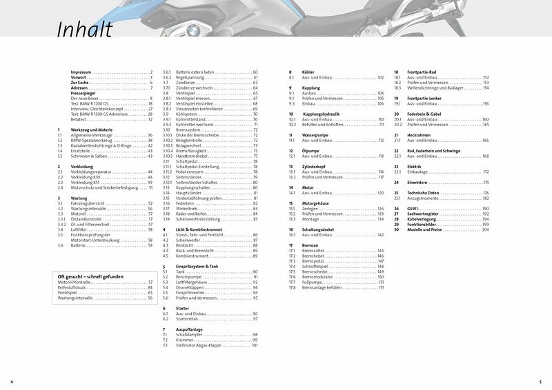 Typenbuch und Reparaturanleitung zu den BMW-Modellen BMW R 1200 GS/Adventure mit WasserkühlungDas Handbuch zu den BMW GS-Modellen mit dem 1200er Boxermotor, wie er im Jahr 2013 vorgestellt wurde, der bislang letzten Entwicklungsstufe des Boxermotors. Umfassend, klar strukturiert, technisch tiefgründig und hochwertig illustriert beschreibt auch dieser Band der motopool Typenbuchreihe alle relevanten Wartungs- und Reparaturarbeiten am Motorrad - vom Wechsel des Endantriebsöls über das Einstellen des Ventilspiels bis zum Aus- und Einbau der Kurbelwelle.Dazu kommen viele wissenswerte Hintergrundinformationen zur Technik und Modellgeschichte in den fundierten technischen Betrachtungen und Testberichten aus den BMW-Sonderausgaben des Motorradmagazins MO. Viel mehr als eine Reparaturanleitung, ein echtes Standardwerk mit großem Nutzwert.