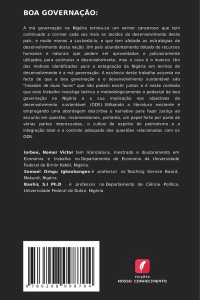 A má governação na Nigéria tornou-se um verme canceroso que tem continuado a corroer cada vez mais os tecidos do desenvolvimento deste país, e muito menos a sustentá-lo, e que tem afetado as estratégias de desenvolvimento desta nação. Um país abundantemente dotado de recursos humanos e naturais que podem ser aproveitados e judiciosamente utilizados para estimular o desenvolvimento, mas o caso é o inverso. Um dos motivos identificados para a estagnação da Nigéria em termos de desenvolvimento é a má governação. A essência deste trabalho assenta no facto de que a boa governação e o desenvolvimento sustentável são "moedas de duas faces" que não podem existir juntas e é neste contexto que este trabalho investiga teórica e metodologicamente o pedestal da boa governação na Nigéria e a sua implicação nos objectivos de desenvolvimento sustentável (ODS). Utilizando a literatura existente e empregando uma abordagem descritiva e narrativa para fazer justiça ao assunto em questão, recomendamos, portanto, um papel forte por parte de várias partes interessadas, o cultivo do espírito de patriotismo e a integração total e o controlo adequado das questões relacionadas com os ODS.