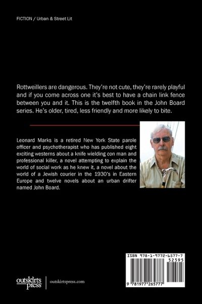 Rottweillers are dangerous. They're not cute, they're rarely playful and if you come across one it's best to have a chain link fence between you and it. This is the twelfth book in the John Board series. He's older, tired, less friendly and more likely to bite.