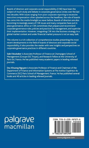 This volume introduces readers to recent developments in the fields of board of directors and corporate social responsibility. It also provides new insights and perspectives on corporate governance practices in different countries.