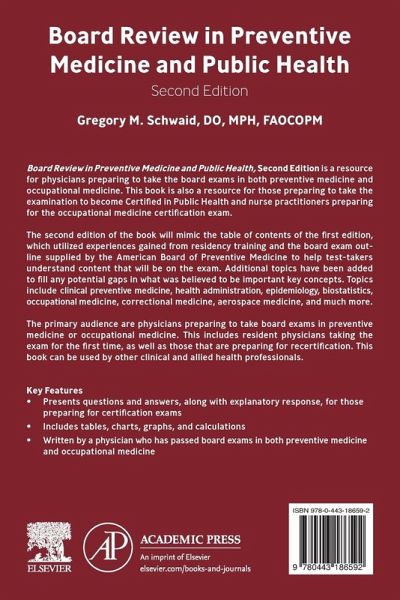 Board Review in Preventive Medicine and Public Health, Second Edition provides an ideal resource for physicians preparing to take the board exams in both preventive medicine and occupational medicine or for those preparing to take the examination to become certified in Public Health. In this new edition, topics have been added to fill any potential gaps in important key concepts. Topics include clinical preventive medicine, health administration, epidemiology, biostatistics, occupational medicine, correctional medicine, aerospace medicine, and much more. This second edition uses the board exam outline supplied by the American Board of Preventive Medicine to help test-takers understand exam topics and components.